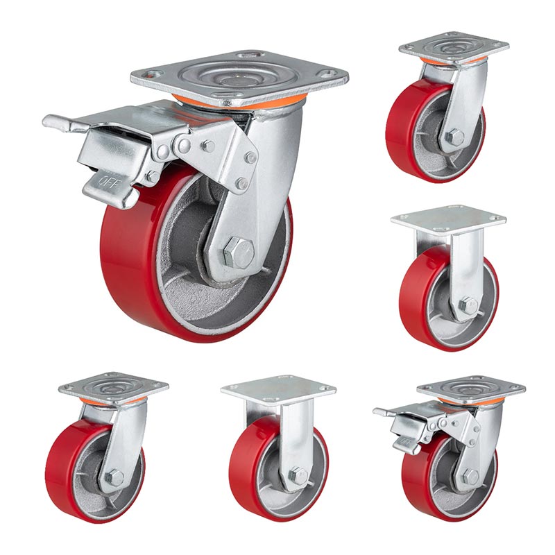 Zbudowane z myślą o wytrzymałości, nasze ciężkie kółka PU na żeliwnym płaskim bieżniku łączą w sobie wyjątkowo wytrzymałe poliuretanowe bieżniki z wytrzymałym żeliwnym rdzeniem, co zapewnia niezrównaną wytrzymałość i ochronę podłogi. Idealne do wózków przemysłowych, ciężkich maszyn i zastosowań pod dużym obciążeniem, toczą się płynnie, są odporne na zużycie i amortyzują wstrząsy, zapewniając cichą i niezawodną pracę nawet w najtrudniejszych warunkach. CMCL® Caster – tam, gdzie trwałość rośnie!