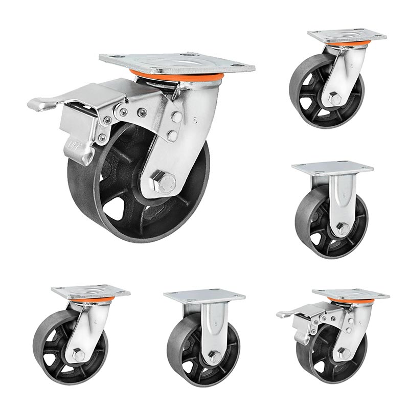 Kółka do dużych obciążeń Żeliwo – stal – te kółka klasy przemysłowej, zbudowane z myślą o ekstremalnej trwałości, mają wytrzymałą konstrukcję z żeliwa, z łatwością wytrzymują duże obciążenia. Idealny do maszyn, wózków i sprzętu w wymagających środowiskach. Płynnie toczący się, odporny na korozję i trwały, zapewniający doskonałą wydajność.